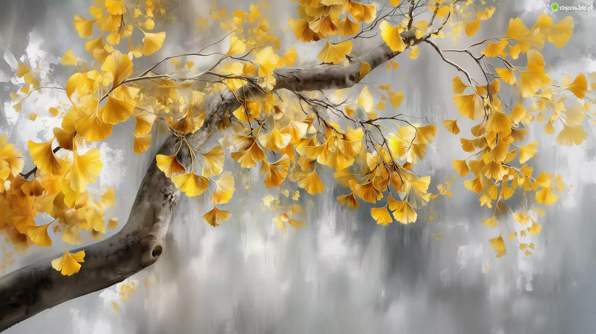 Zdjęcie Miłorząb japoński, Drzewo, Żółte, Liście, Grafika AI