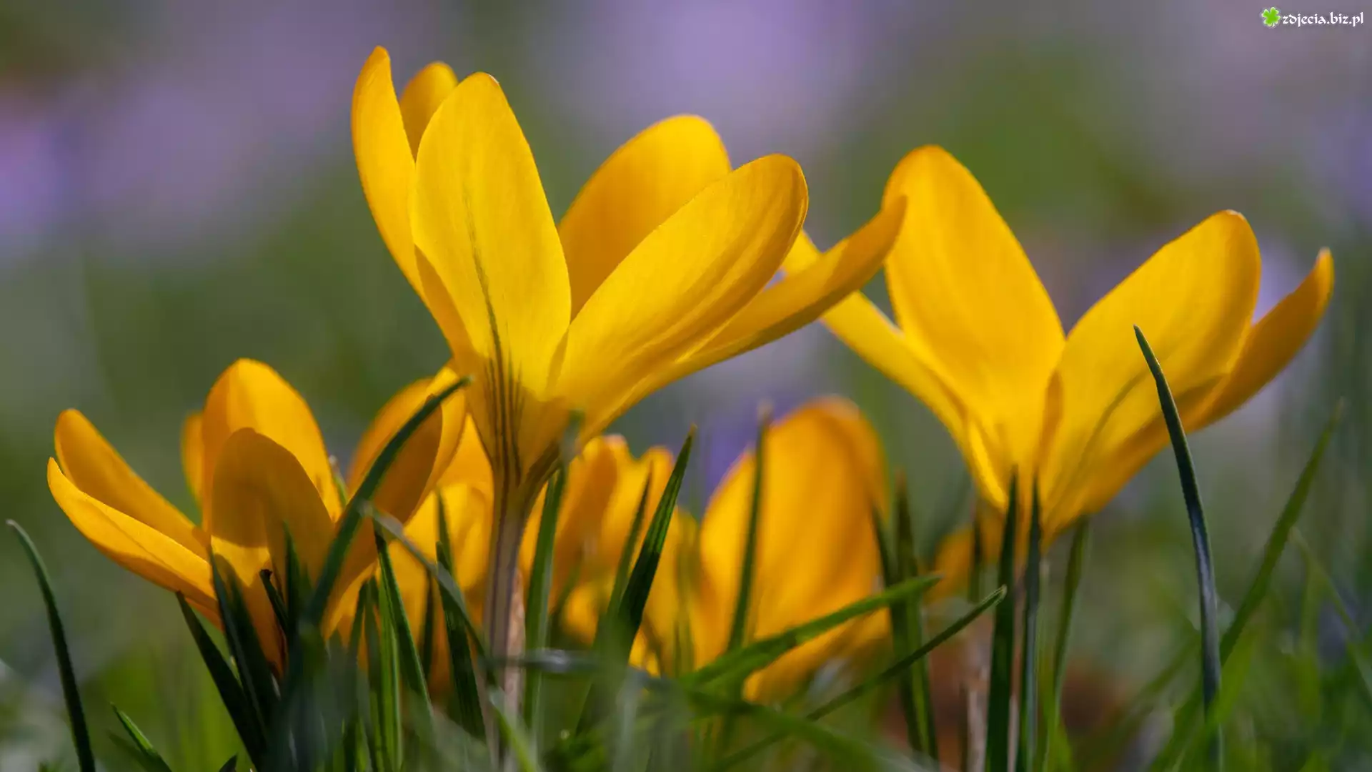 Zdjęcie Zbliżenie, Żółte, Krokusy, Kwiaty, Trawa