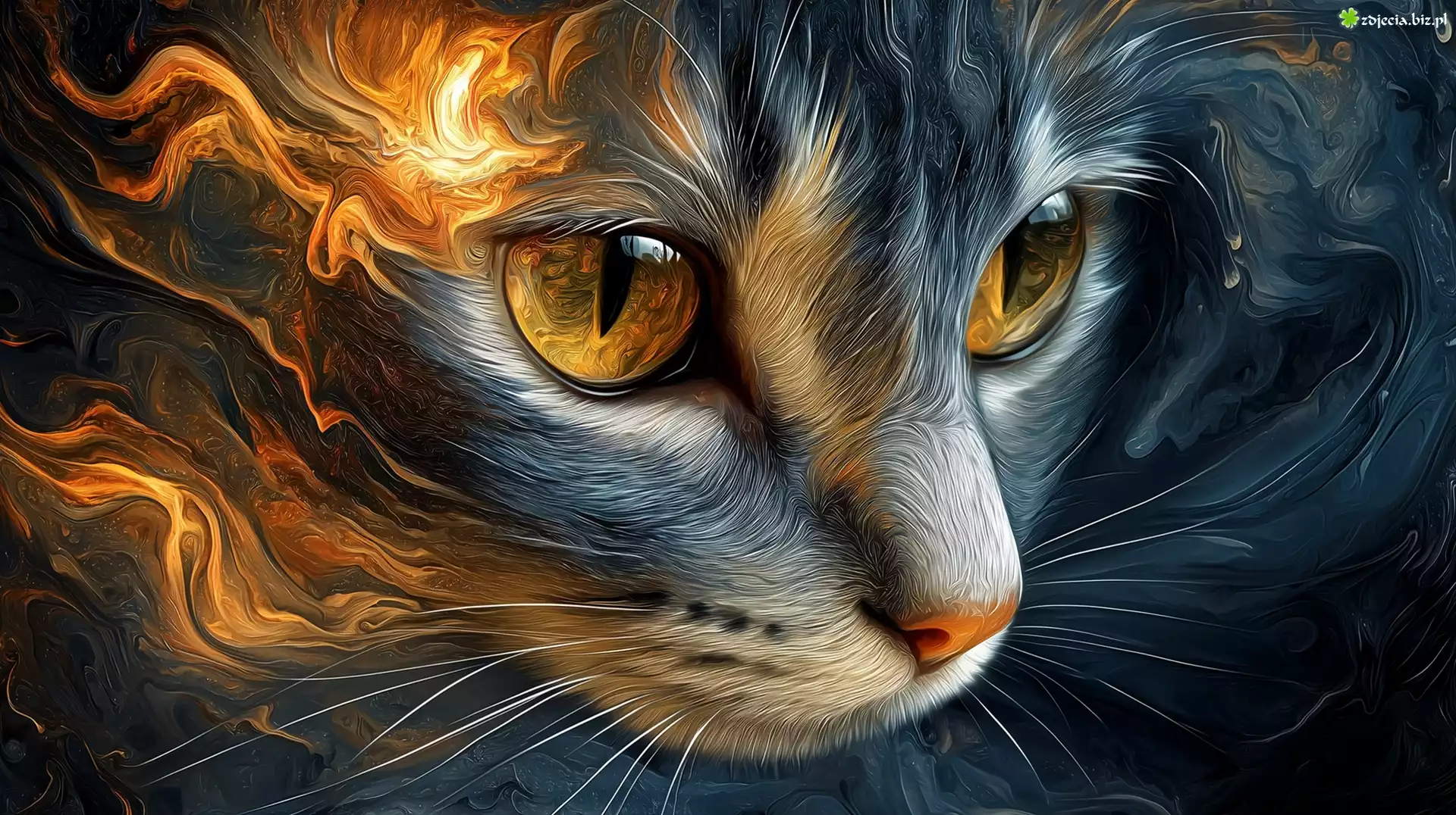 Zdjęcie Kot, Żółte, Oczy, Grafika AI