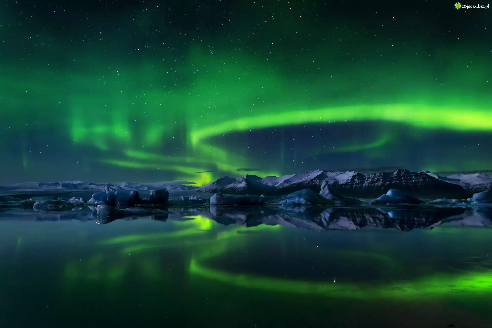 Zdjęcie, Zorza, Polarna, Jezioro, Góry, Noc