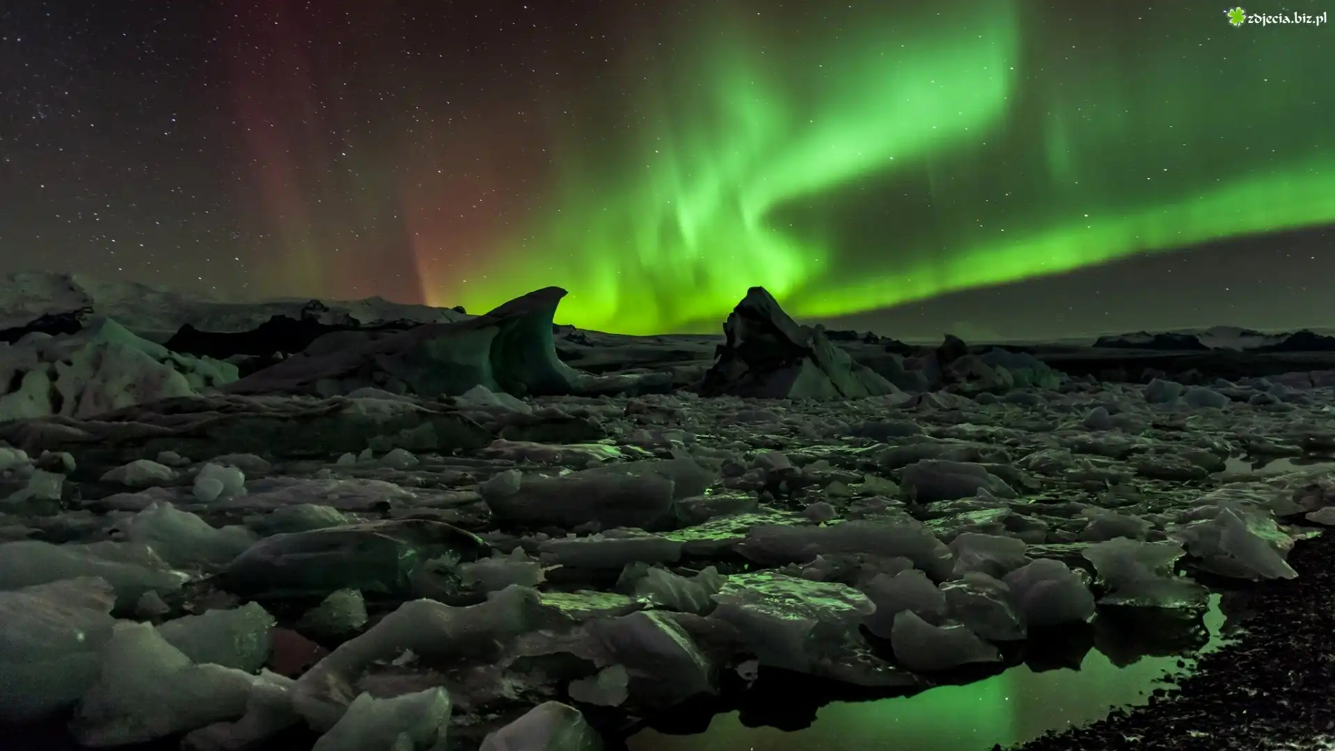 Zdjęcie Zorza, Polarna, Lodowe, Morze