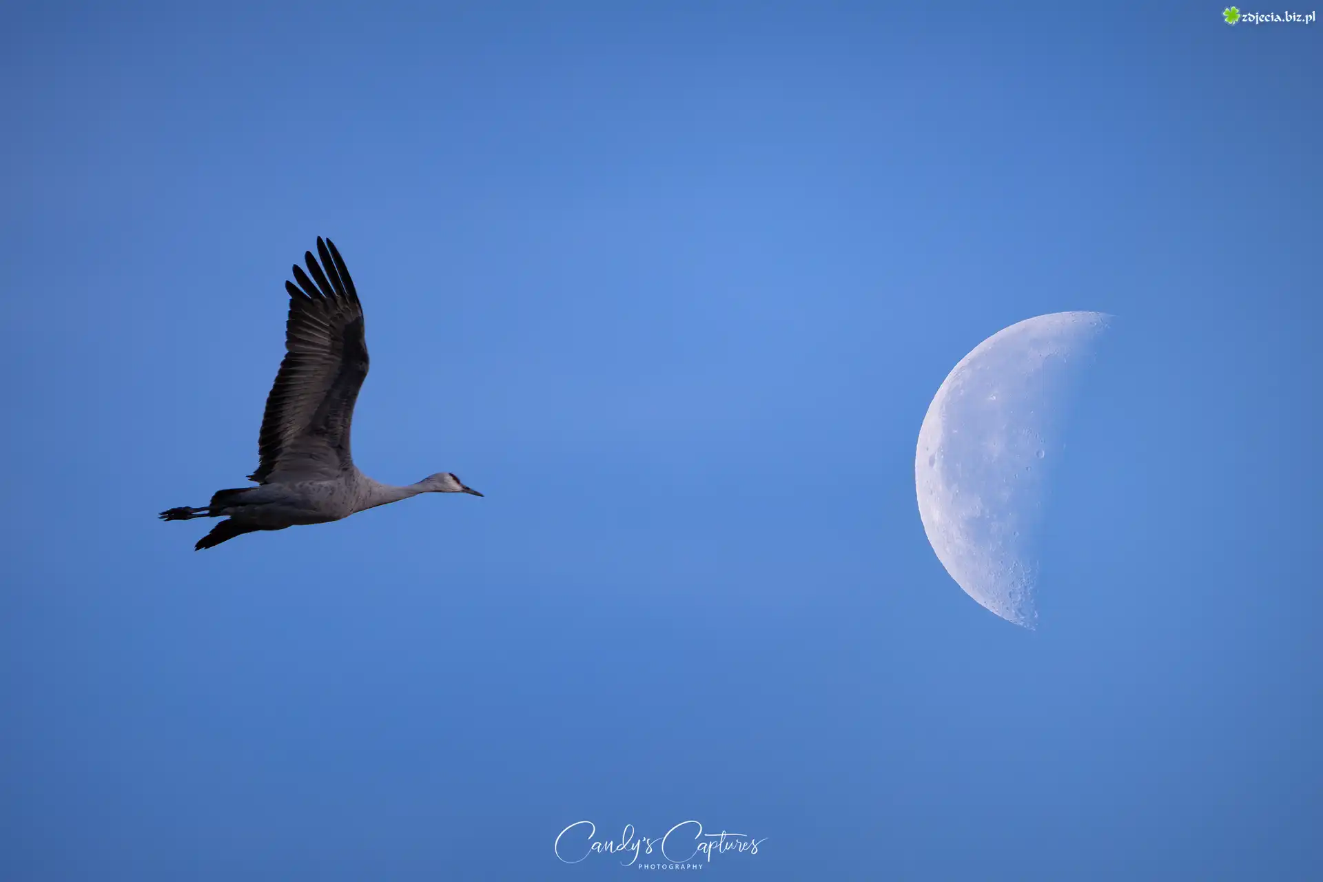 Zdjęcie Ptak, Żuraw kanadyjski, Księżyc, Niebo