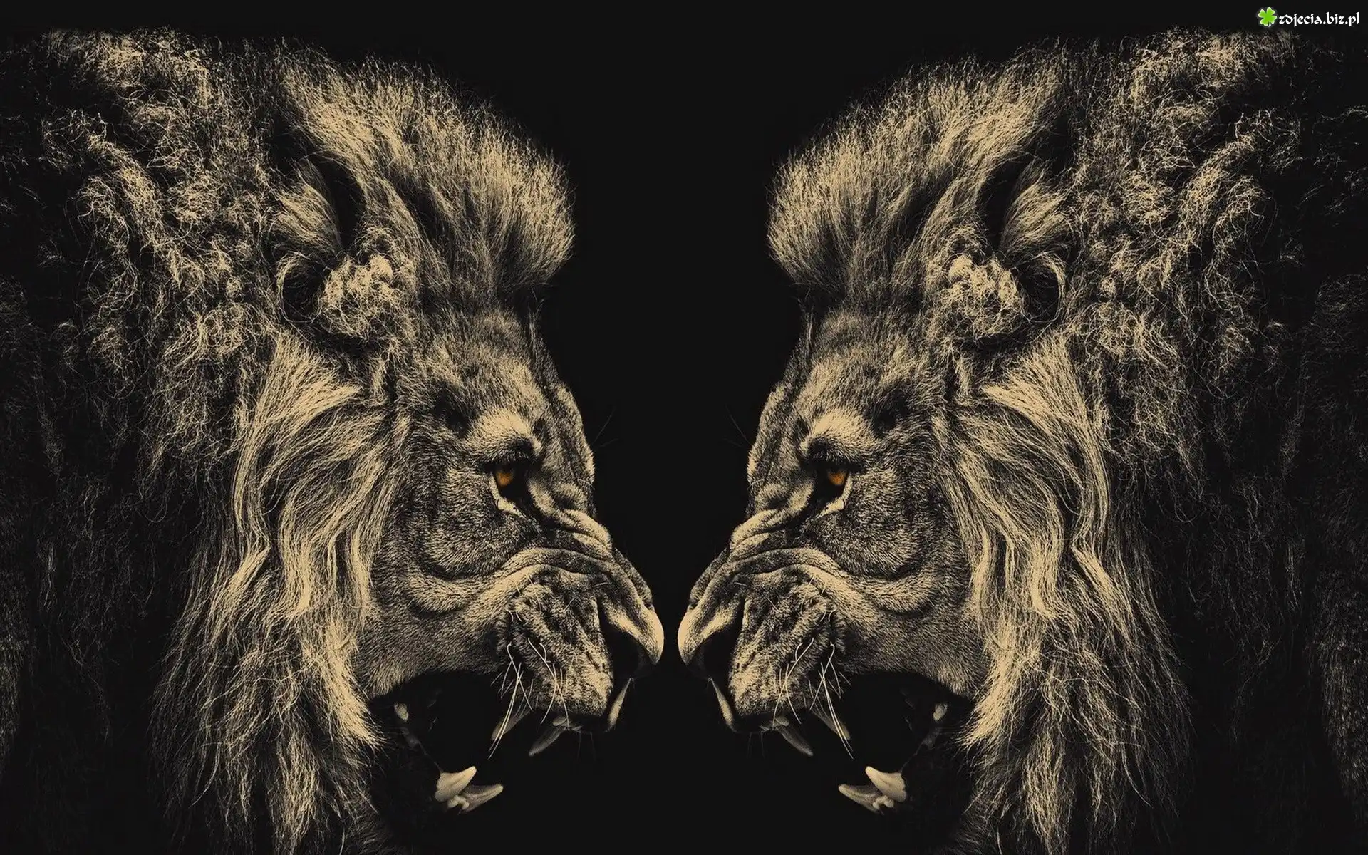 Zdjęcie, Zwierzęta, Lwy, Brązowe oczy, Kły, Samce